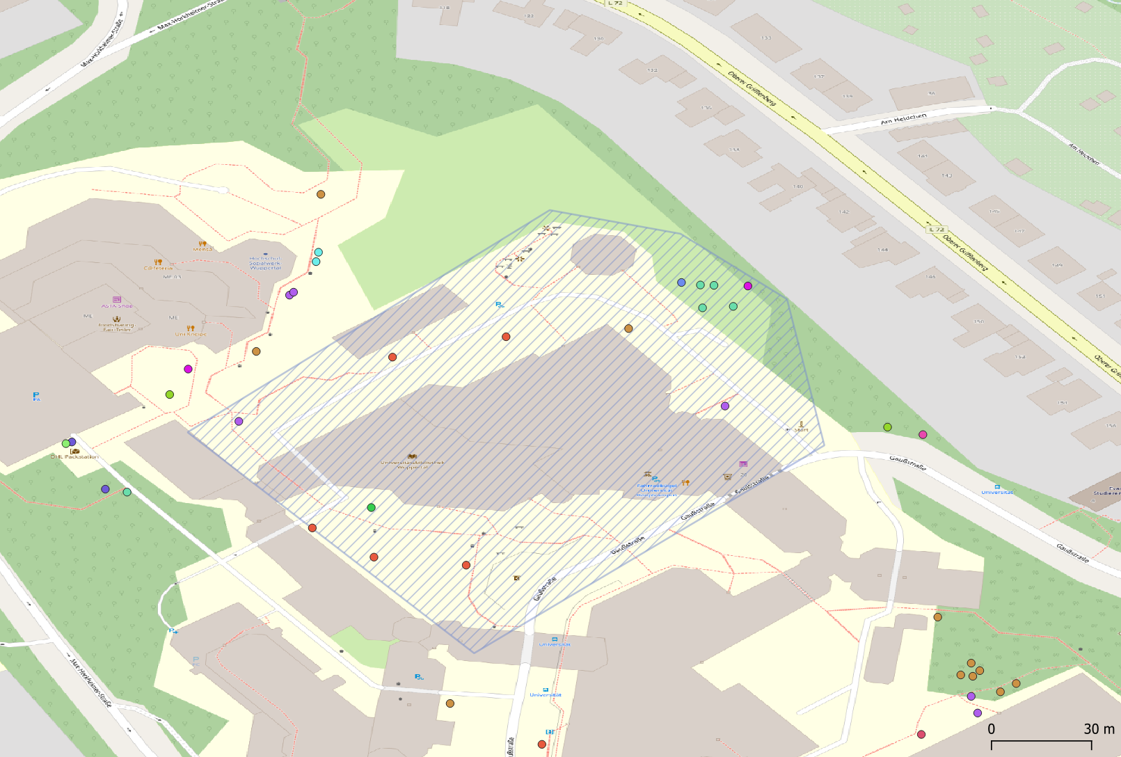 Hallo zusammen! Im Zuge meiner Bachelorarbeit habe ich diesen Parcours mit vier Routen erstellt. Es geht um das Ökosystem Wald auf dem Campus Grifflenberg der Universität Wuppertal und ist an Interessierte ab der Sekundarstufe II gerichtet. Viel Spaß!